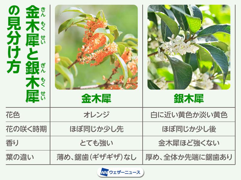 金木犀と銀木犀は、どのように見分ければいいのでしょうか。