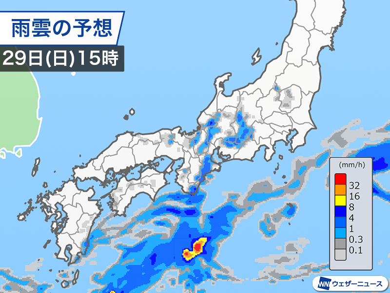 午後は大気の状態が不安定になり、山沿いを中心に新たな雨雲が急発生する可能性があります。現在は晴れている中国西部や四国西部、九州でも天気の急変に注意してください。週末のお出かけには折りたたみ傘があると安心です。
