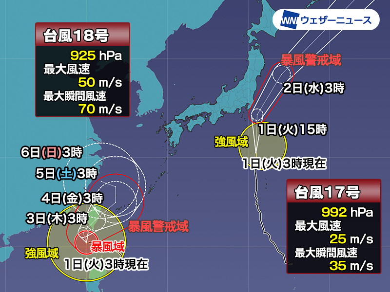 台風18号 週後半に暴風域を伴い沖縄・先島諸島へ接近か