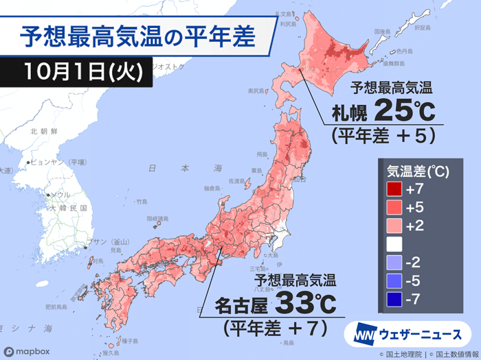 10月スタートは東海や西日本で真夏日も 平年よりかなり気温高い