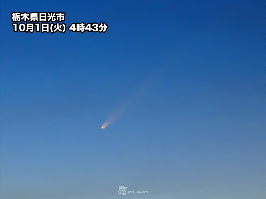 今日・昨日などは西日本などで彗星が観察できた所がありました。明日10月2日(水)の朝は、東日本などで晴れて観察のチャンスとなりそうです。3日(木)は北海道や静岡県周辺などで晴れ間が期待出来ます。