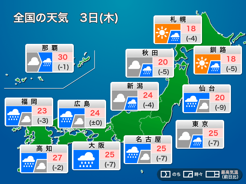 今日10月3日(木)の天気予報…