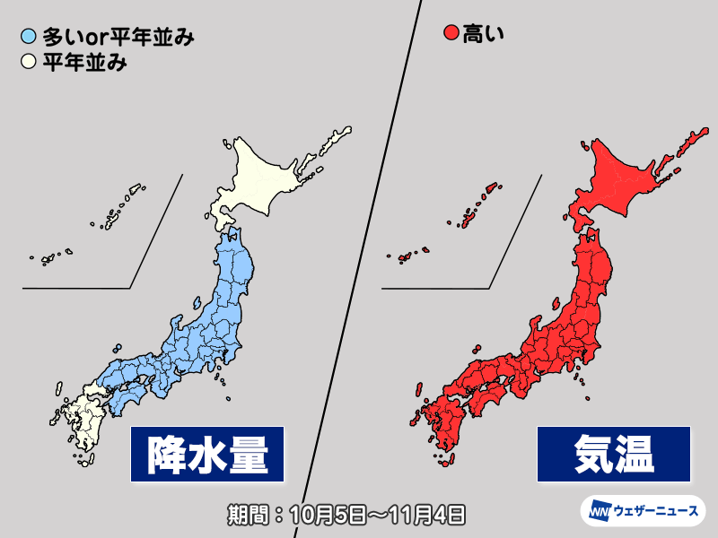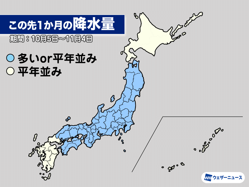 また10月も9月と同様に日本の南海上で台風が発生して日本に影響する可能性があります。秋雨前線と共に台風の動向にも注意が必要です。