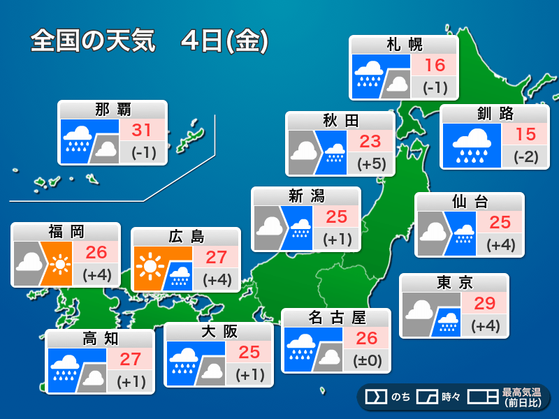 今日10月4日(金)の天気予報…