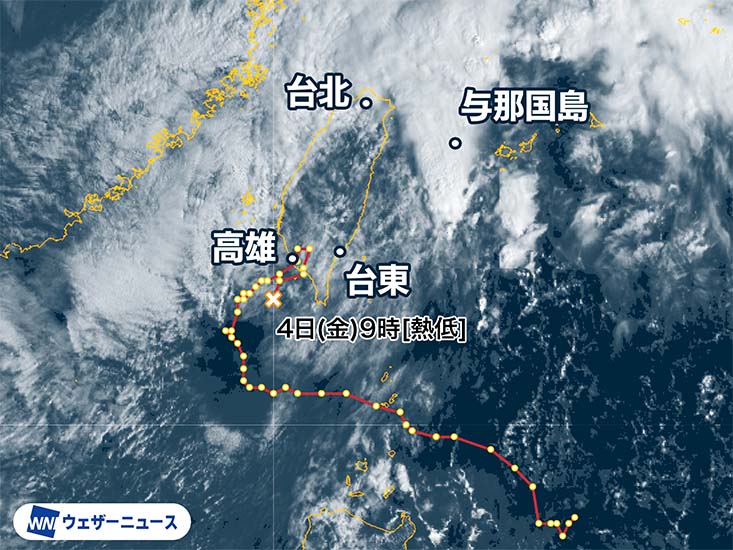 沖縄の北に停滞する前線に向かって、熱帯低気圧周辺の暖かく湿った空気が流れ込んで大気の状態が不安定になっているため、今日4日(金)は朝から沖縄で局地的に雨が強まっています。沖縄県与那国町付近では7時00分までの1時間に約100mmの猛烈な雨が降ったとみられ、気象庁は記録的短時間大雨情報を発表しました。