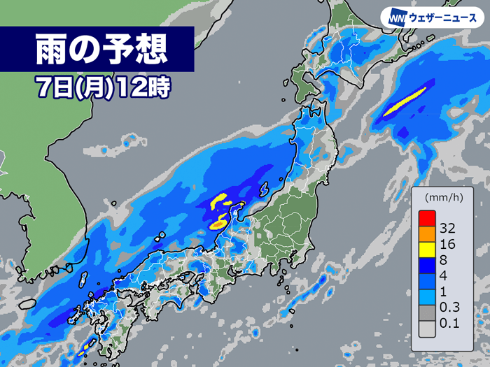 午後は太平洋側でも本降りの雨に