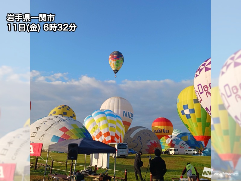 明日12日(土)からの三連休は、今回の会場付近を含めて晴れる所が多い予想です。多くの気球が気持ちよく飛び立てると良いですね。