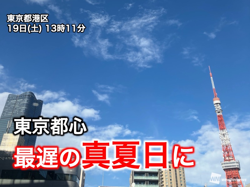 東京都心は13時32分に30.1℃を観測し、統計開始以来、最も遅い真夏日になりました。