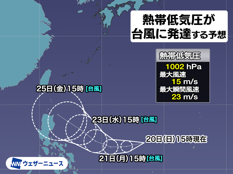 熱帯低気圧が台風へ発達する予想 今年10月2つ目の台風発生か