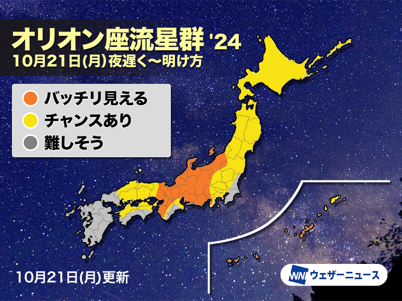 今日10月21日(月)はオリオン座流星群のピーク