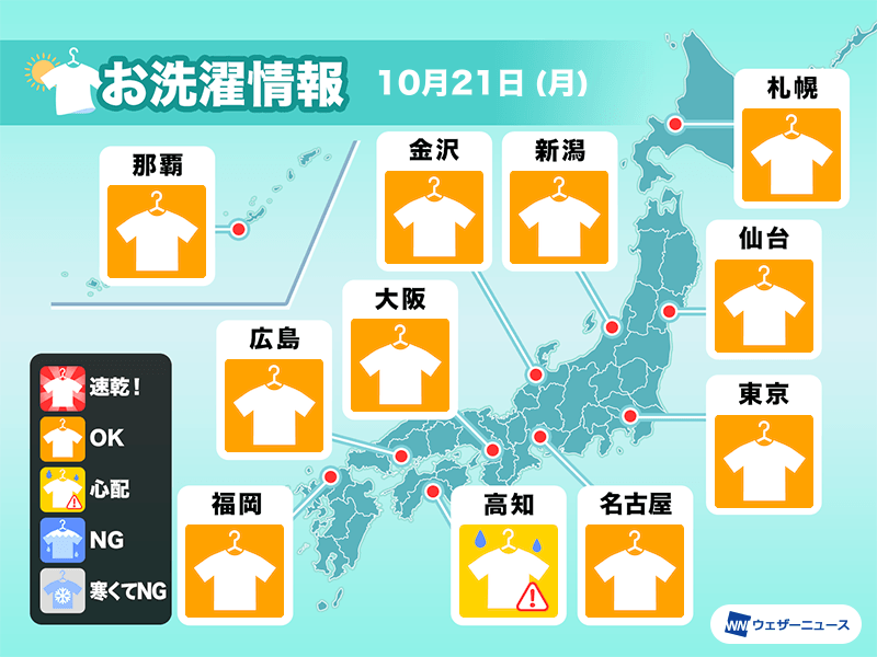 10月21日(月)の洗濯天気予報