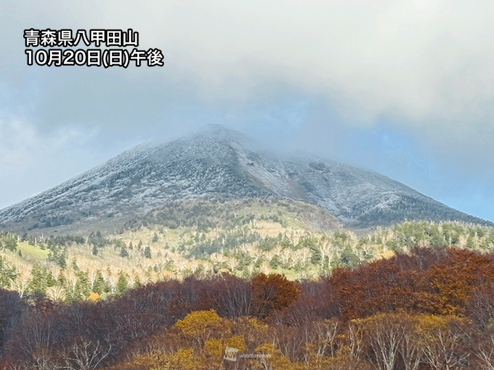 また、北日本の山々でも雪になり、雲が晴れて山頂付近が見えた所では麓から雪化粧している様子が確認されました。札幌市郊外の手稲山をはじめ、盛岡からは岩手山、仙台からは蔵王山など、北海道と東北の9つの山で初冠雪を観測しています。