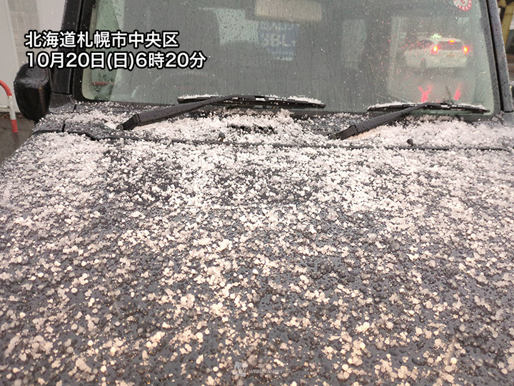 平地で雪を降らせる目安の上空1500m付近で−6℃以下の寒気が、北海道の大部分を覆いました。昨日19日(土)の18時過ぎに稚内で初雪となったのを皮切りに、夜には旭川・網走・帯広、早朝には札幌でも初雪を観測しています。札幌は平年より1週間以上早い初雪です。