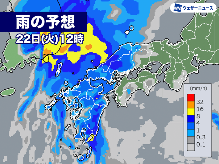 雨の予想 22日(火)12時
