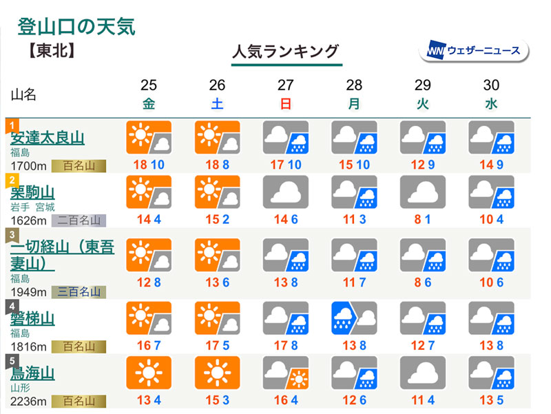 » 東北の山の天気を見る» 東北の山の天気を見る