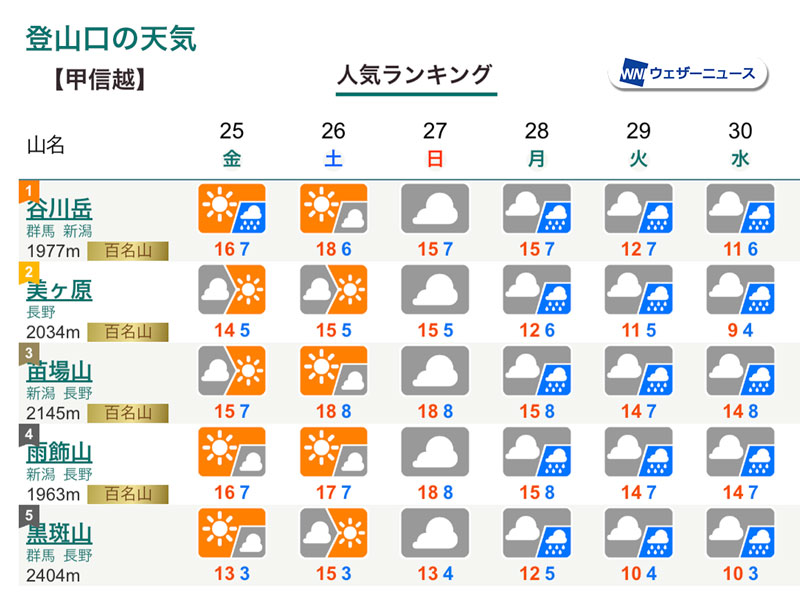 今週末の山の天気