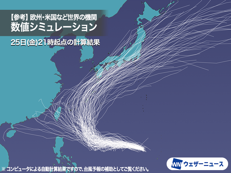 気象庁の台風情報は5日先まで進路が予想されていますが、その後の予想を数値シミュレーションを参考に検討すると、本州方面に影響が出る可能性も考えられます。