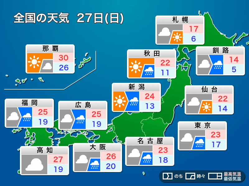 明日10月27日(日)の天気予報…