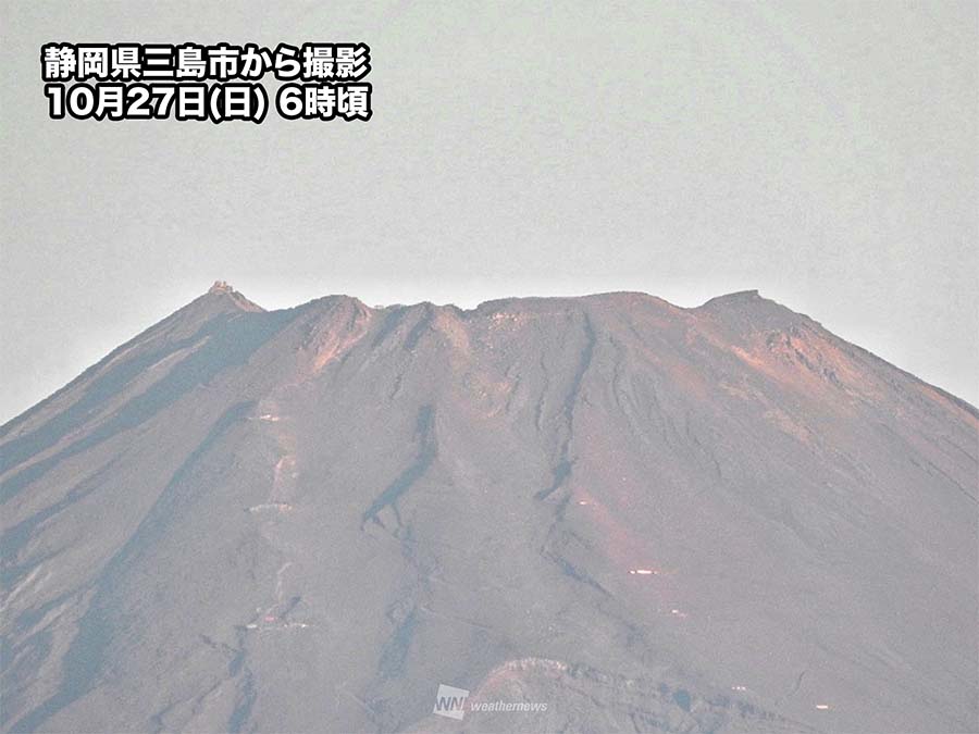 今季はまだ富士山で初冠雪が観測されていません。富士山の昨年の初冠雪は10月5日、初冠雪の平年日は10月2日、これまでの統計で最も遅かったのは2016年の10月26日だったため、今年はこの最も遅い記録を更新することが確定しました。