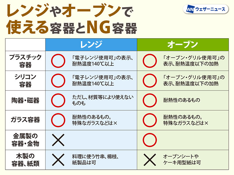 プラスチックはOK? 電子レンジやオーブンで使える容器とNG容器