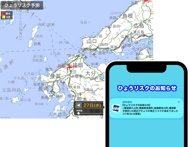 また、ひょうのリスクが高まったら、スマートフォンにプッシュ通知でお知らせしています。