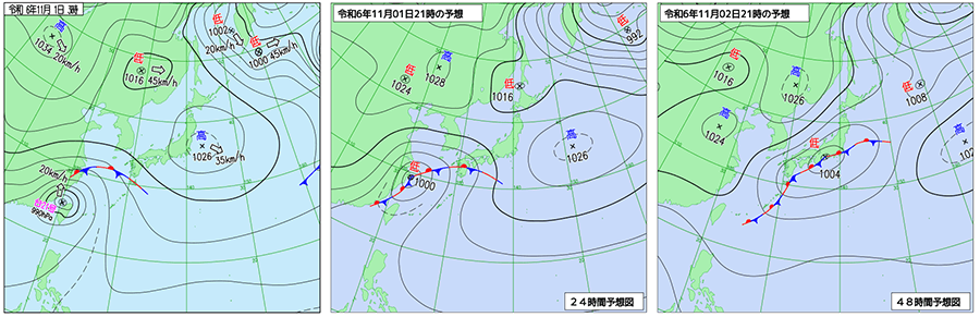 九州北部など、多いところでは48時間に300mm以上に達する可能性があります。11月としては珍しい大雨になるおそれがあるため、土砂災害や低地の浸水、河川の増水等に注意・警戒するようにしてください。