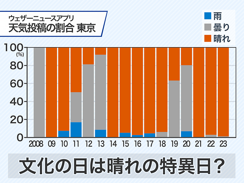 11月3日 文化の日は“晴れの特異日”? 東京は4年連続で晴天か