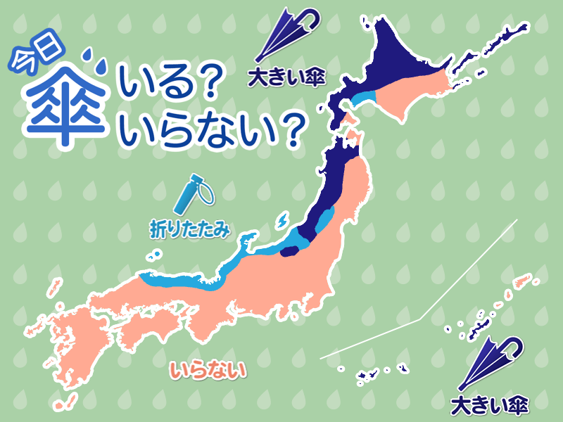 北陸から山陰にかけては、午前を中心に雨の降る可能性があります。外出の際は折りたたみの傘があると安心です。