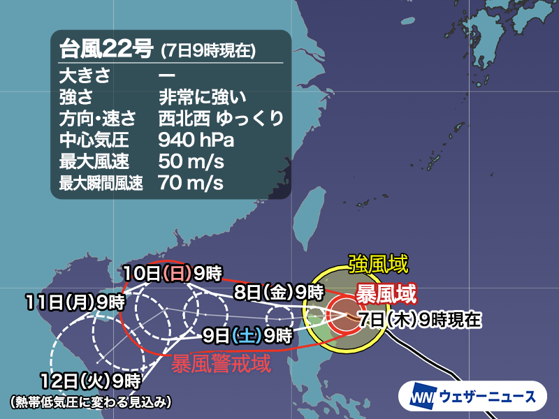 台風22号は非常に強い勢力でフィリピンに 沖縄も強風・高波続く