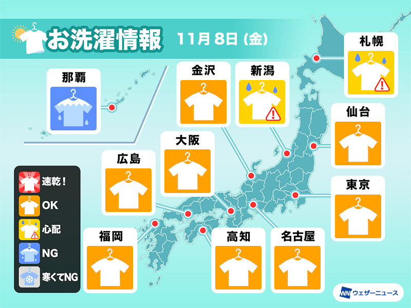 11月8日(金)の洗濯天気予報…
