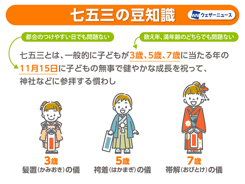 また、必ずしも11月15日に行わなければならないものでもありません。11月15日は祝日ではないので、都合のつけやすい週末や祝日、参拝客の混雑の少ない時期など選んで全く問題ありません。日本は南北に長いので、地域の気候なども考えることもあるでしょう。