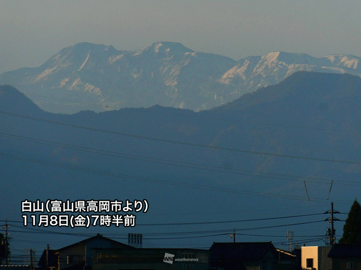 立山黒部アルペンルートでも知られる立山は標高3015m、白山は標高2702mでいずれも北陸を代表する名峰です。昨日は一時的に冬型の気圧配置となって日本海側の広い範囲で雨や雪が降り、北陸の高い山では雪が積もりました。