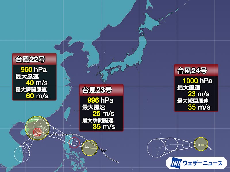 » 関連記事「熱帯低気圧が複数発生 台風が3つ〜4つになる可能性も」