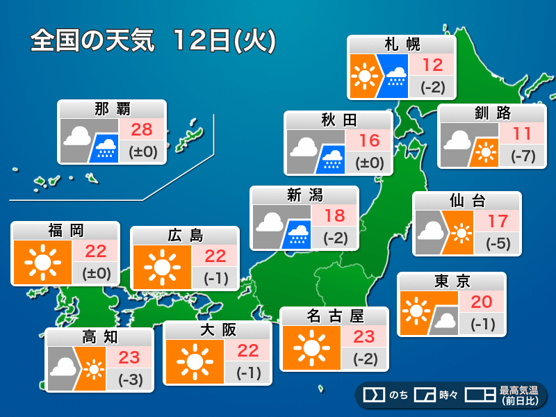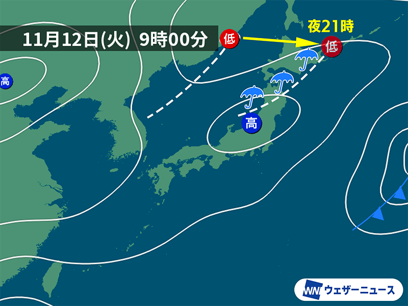 今日11月12日(火)の天気予報