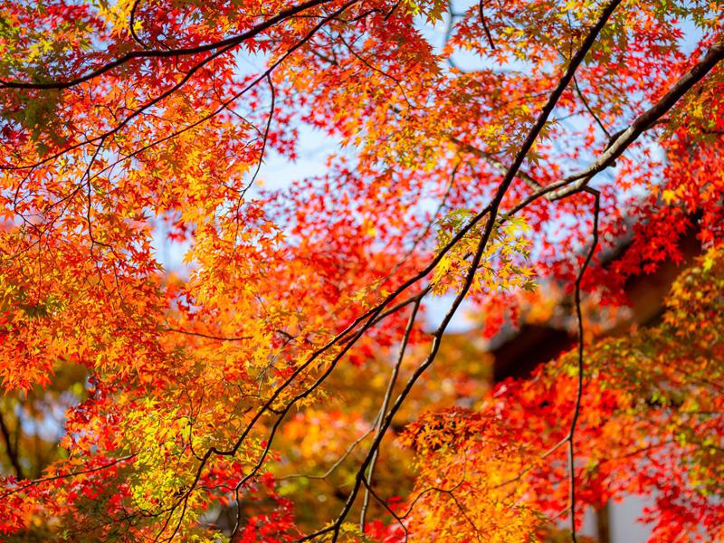 「構図内の明暗によって、手軽にメインの被写体である紅葉の鮮やかさを強調できるので、おすすめです。