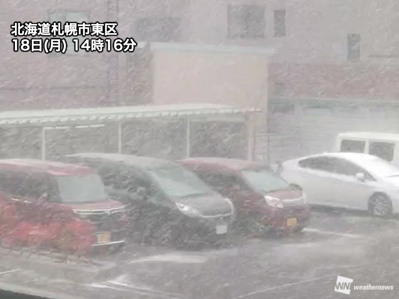 札幌市内で雪が強まる