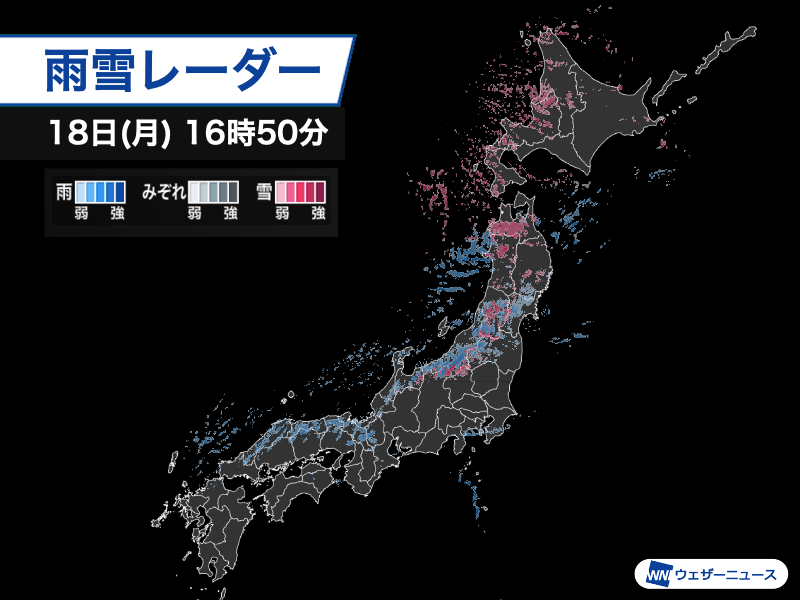 北日本日本海側では明日19日(火)の午前中にかけて雪の降りやすい状況が続くとみています。山沿いを中心に、積雪の増加に注意が必要です。北海道や東北北部は平野部でも雪の積もる可能性があります。積雪や凍結による路面状態の悪化に注意してください。