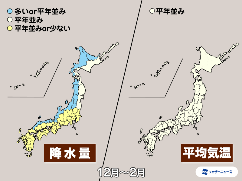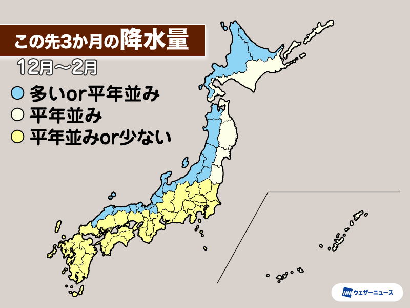 一方、関東から西の太平洋側は晴れる日が多く、降水量は平年並か少ない予想になっています。