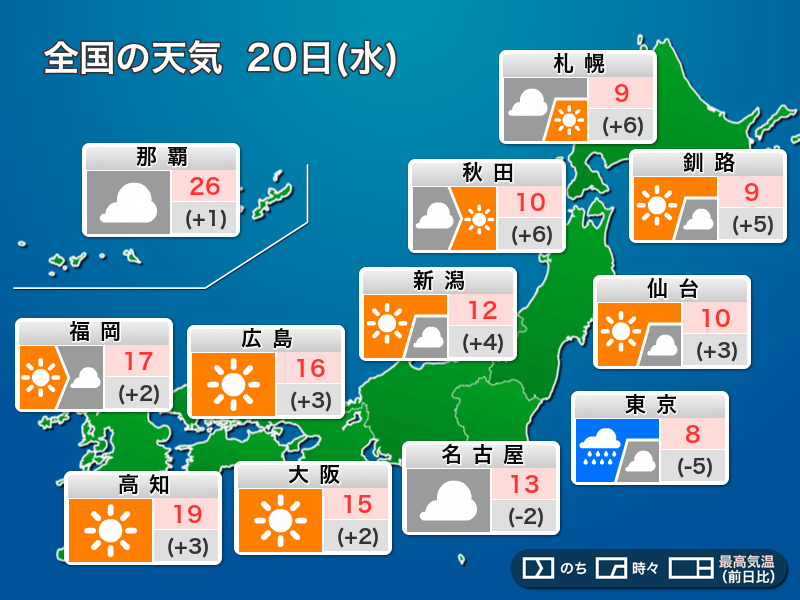 今日11月20日(水)の天気予報…