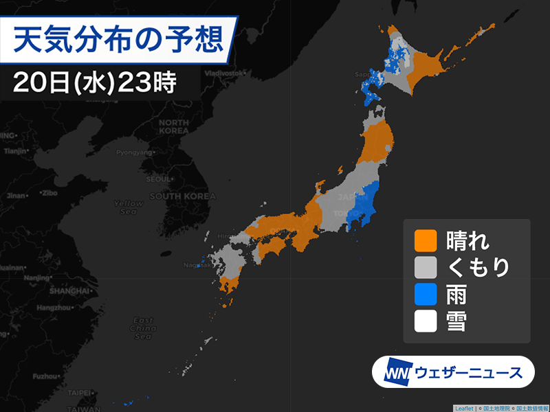 関東は南岸にある低気圧にある影響で雨が降り、天体観測には不向きな空となります。北海道や東海や北陸、九州でも雲が広がる予想です。