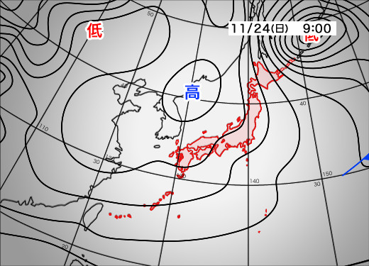 今日11月24日(日)の天気予報…