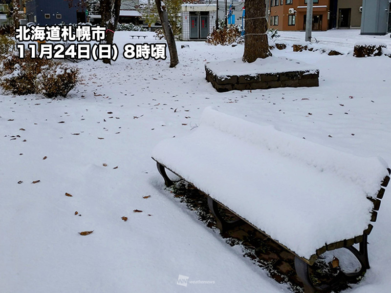 石狩湾から雪雲の流れ込みが続いた札幌では、昨夜8時の時点で0cmだった積雪深が今朝6時には12cmに達して、今季最深の積雪となりました。