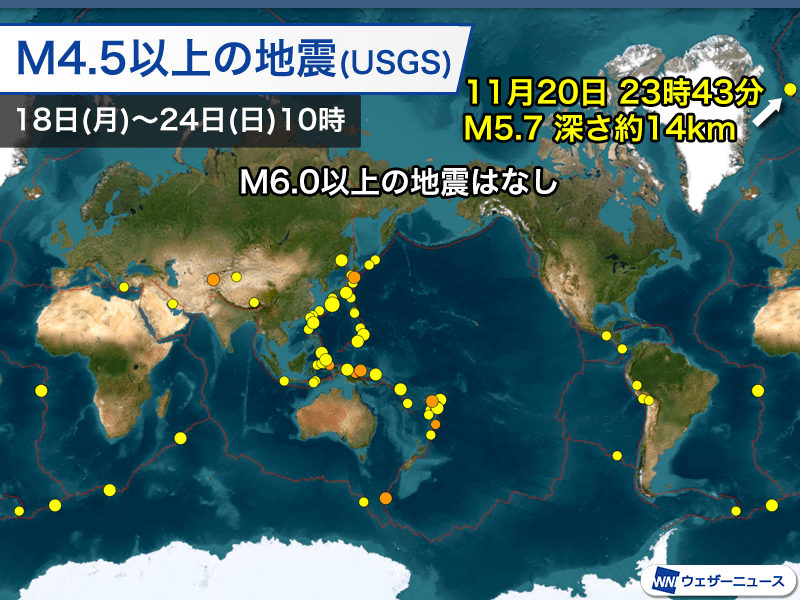 世界:グリーンランドの沖でM5.7の地震