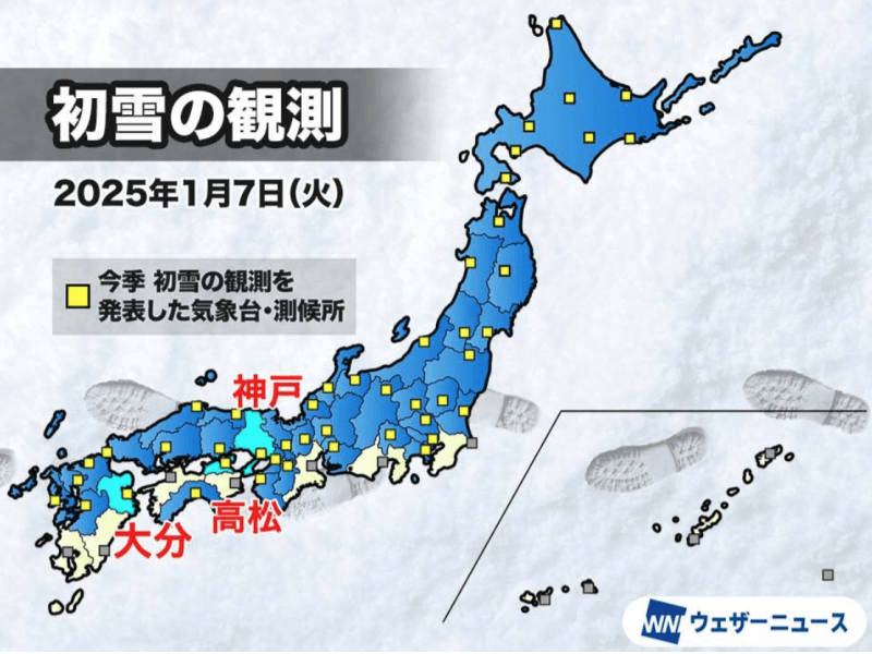 西日本各地で初雪観測 名古屋では約2年ぶりの積雪