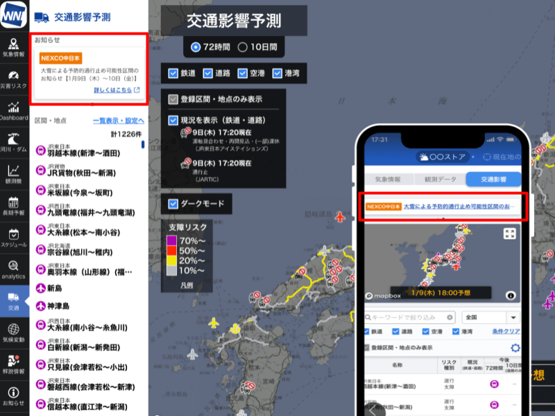 【アップデート】交通影響予測に「予防的通行止め」コンテンツ追加