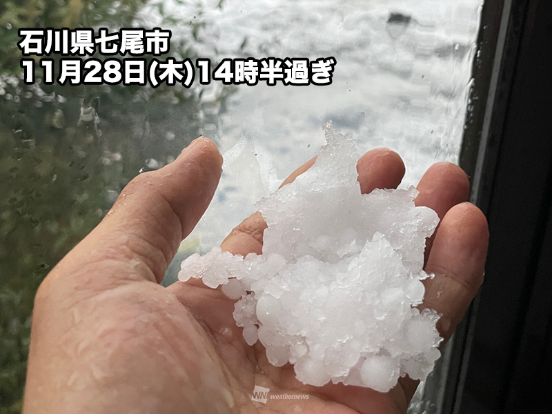 北陸中心に激しい霰(あられ)や雹(ひょう)