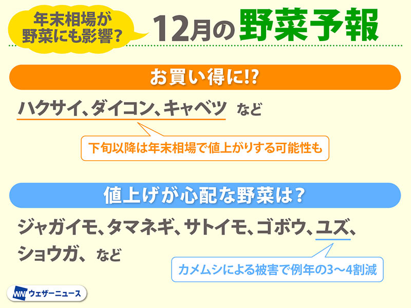 12月の“野菜予報” 年末相場が野菜にも影響?安いタイミングはいつ?