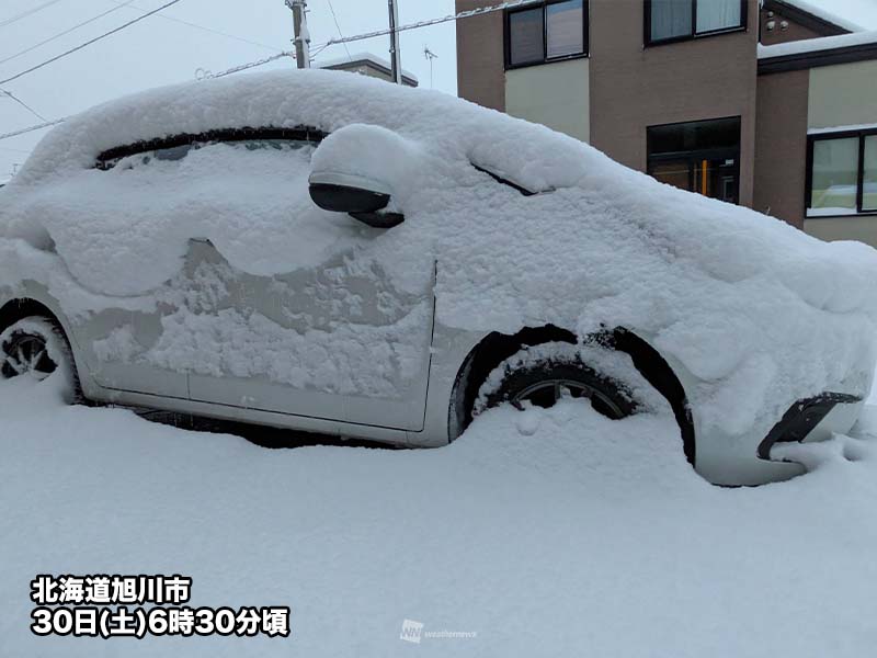 北海道内のウェザーニュース会員からは「車も雪でスッポリ」「湿雪どっさり」など積雪報告が寄せられました。