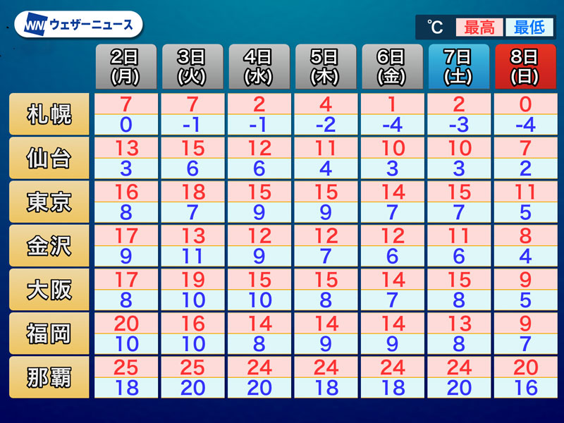 週前半と後半で体感が大きく変化するので、体調を崩さないようにお気をつけください。