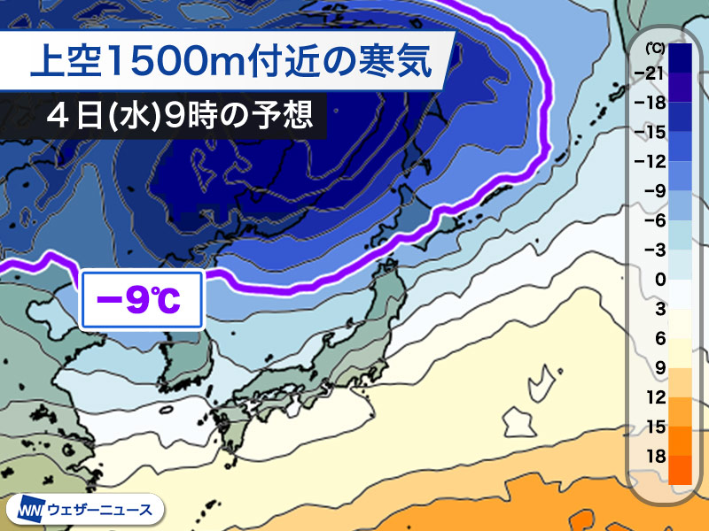 » 寒気の流れ込み予想